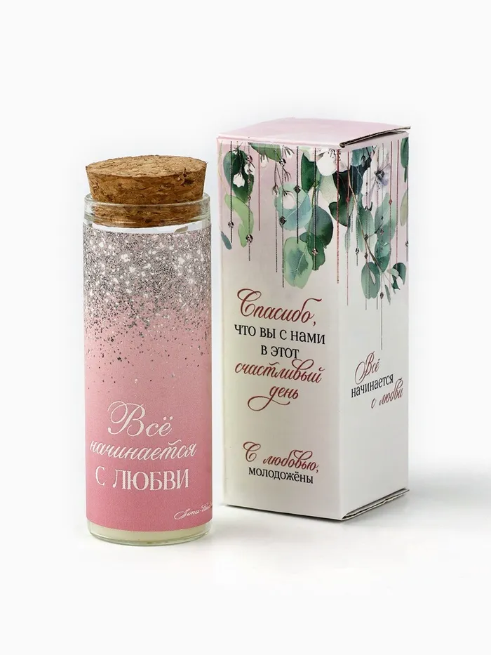 Свеча в колбе «Все начинается с любви» 8×3 см — Характеристики