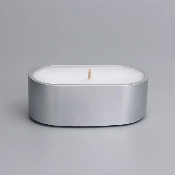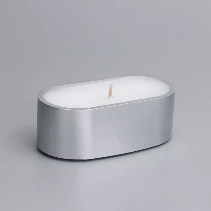 Свеча в овальном подсвечнике из гипса,9,5х4,7х3см,серебро