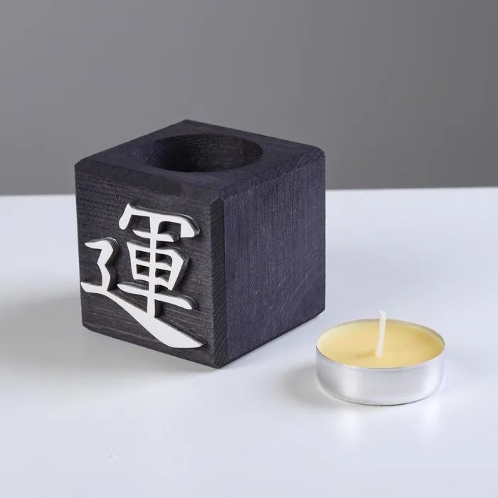 Свеча в подсвечнике деревянном «Куб, Иероглифы. Здоровье», эбен, аромат манго — Характеристики