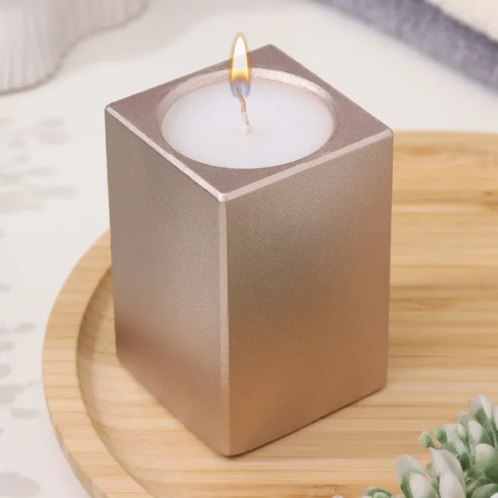 Свеча в подсвечнике из гипса «Квадрат», 5×8 см, шампань