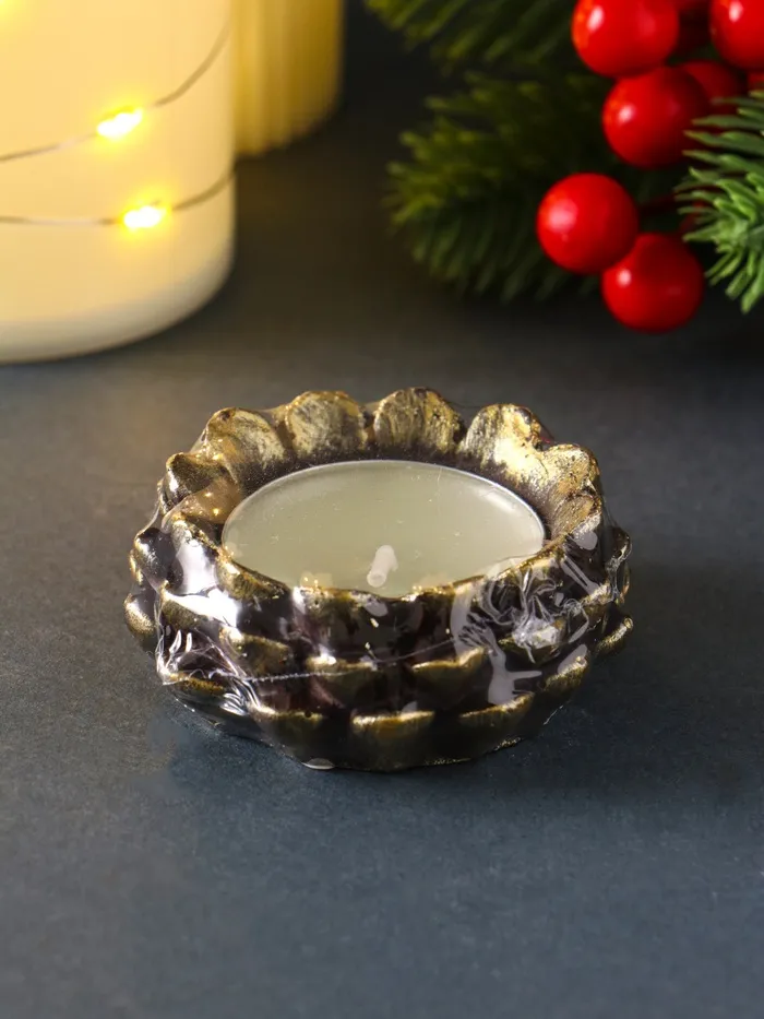 Привнесите в свой интерьер дух уютного зимнего леса с этим изящным аксессуаром. Изделие сочетает в себе изысканный бронзовый оттенок и уникальную текстуру, напоминающую лесную шишку, что создает эффект ручной работы и добавляет помещению природного тепла.