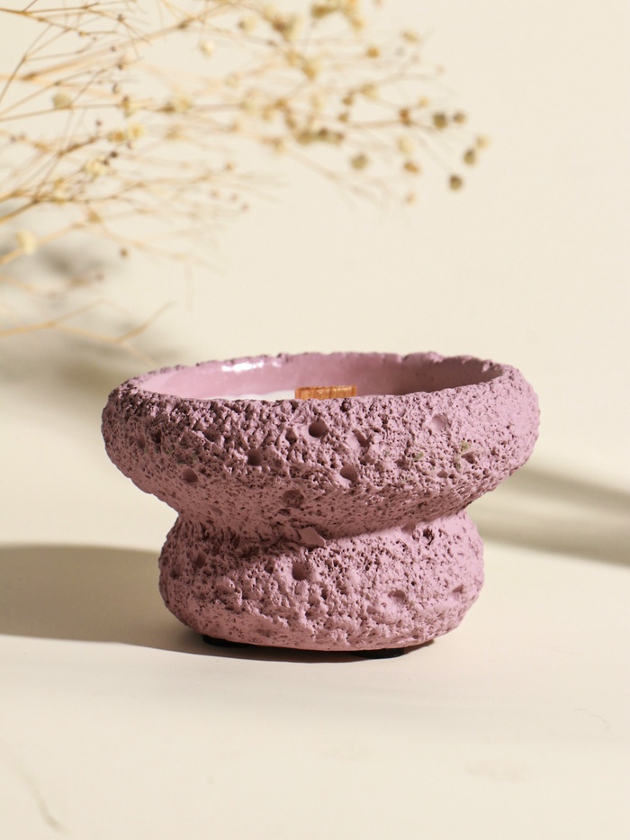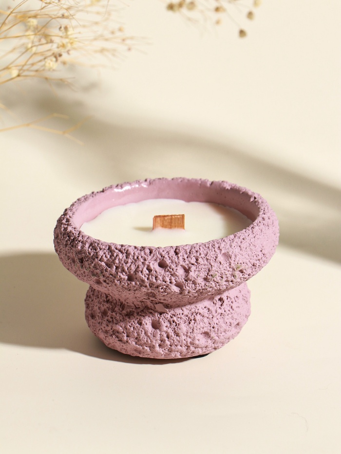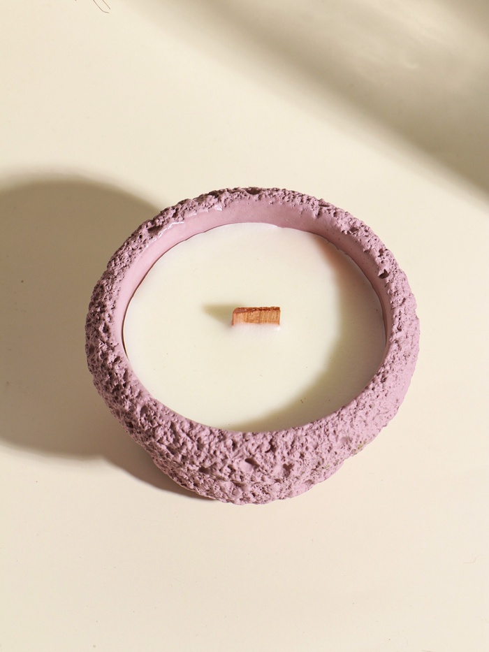 Эта розовая свеча в бетонной чаше с деревянным фитилем — простое и сильное украшение для вашего пространства. Она создаёт атмосферу уюта и спокойствия, где пламя становится главным элементом декора.