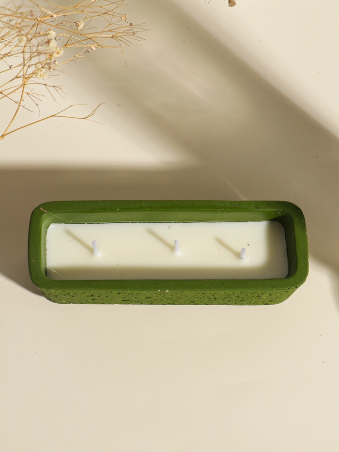 Эта зелёная свеча в бетонном подсвечнике — для тех, кто ценит спокойствие и долгие часы тишины. Три хлопковых фитиля горят долго и ровно, наполняя пространство мягким, живым светом без навязчивого аромата. Её строгий, тактильный дизайн создаёт атмосферу уединённости и стабильности, превращая простой ритуал в момент глубокой перезагрузки.