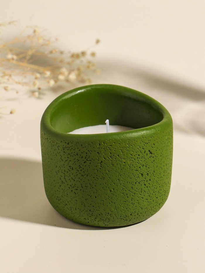 Свеча в зелёном вулканическом подсвечнике — это лаконичный акцент для интерьера. Её природная форма и глубокий оттенок зелёного создают атмосферу спокойствия и уединения, подходящую для любого момента. Простой цилиндр свечи из чистого парафина горит ровно, а устойчивая каменная текстура подсвечника надёжно его удерживает.