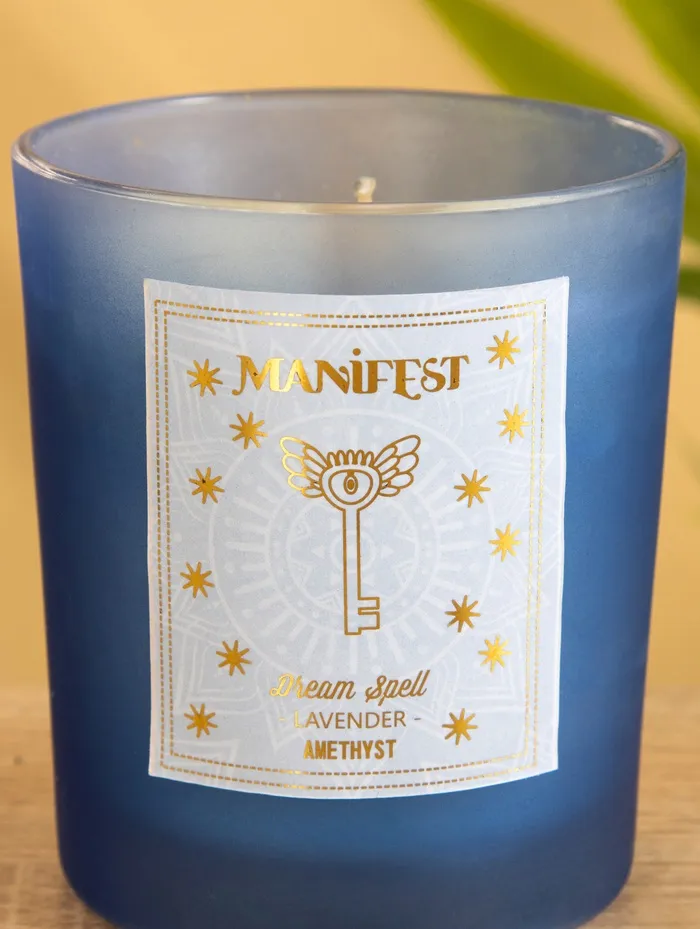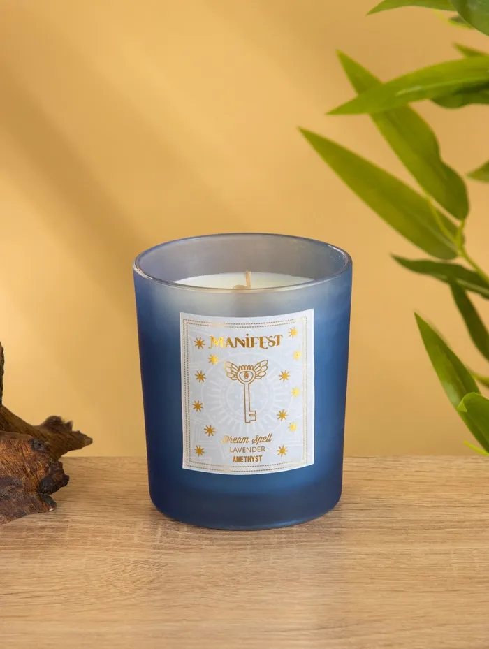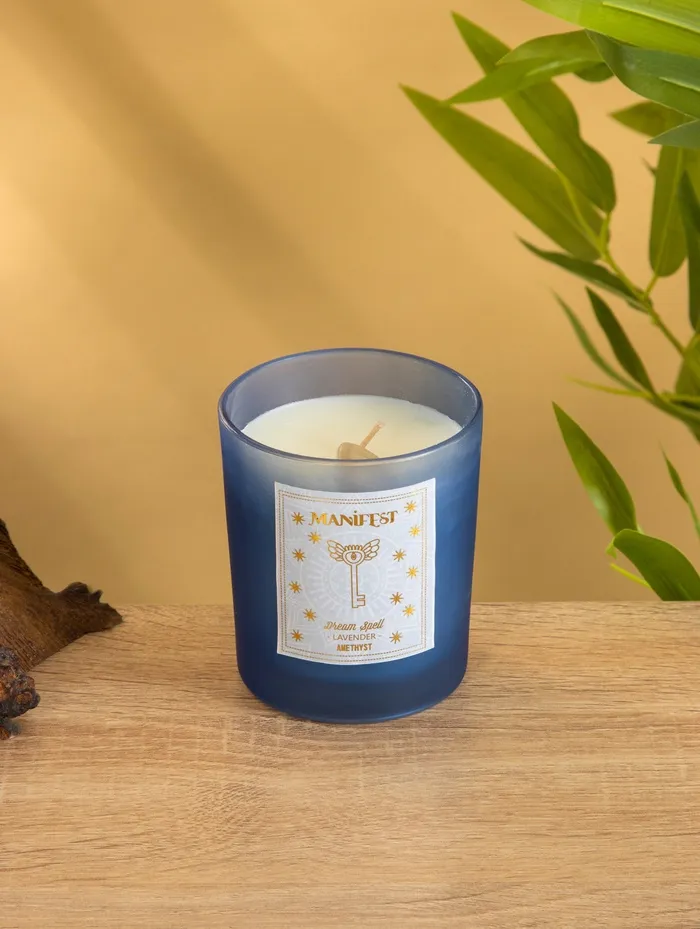 Свеча в стекле с камнем Manifest, лаванда, 200 г, соевый воск