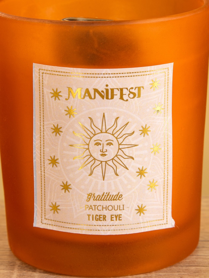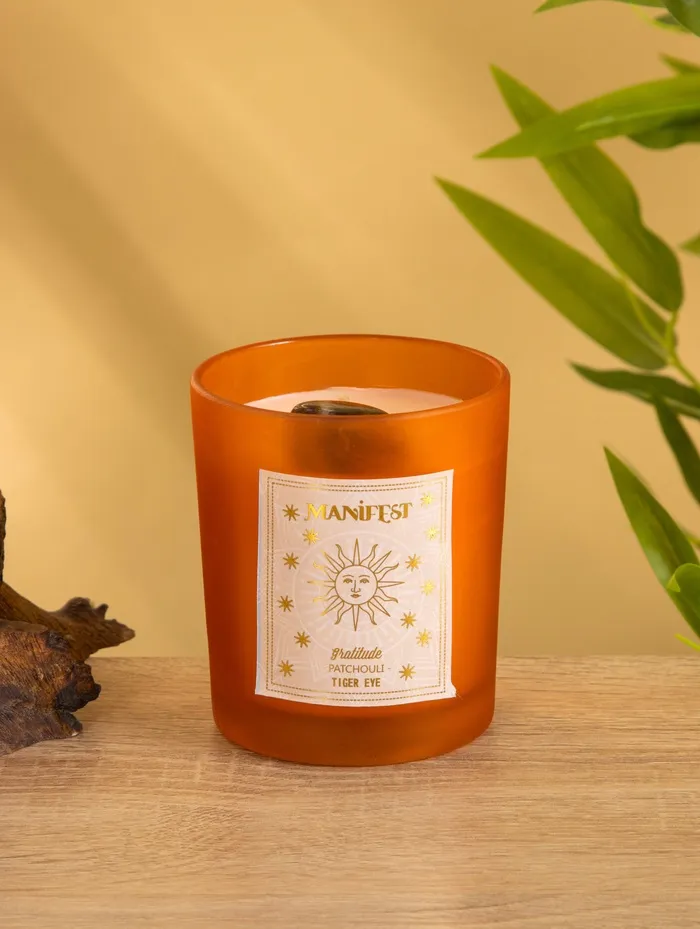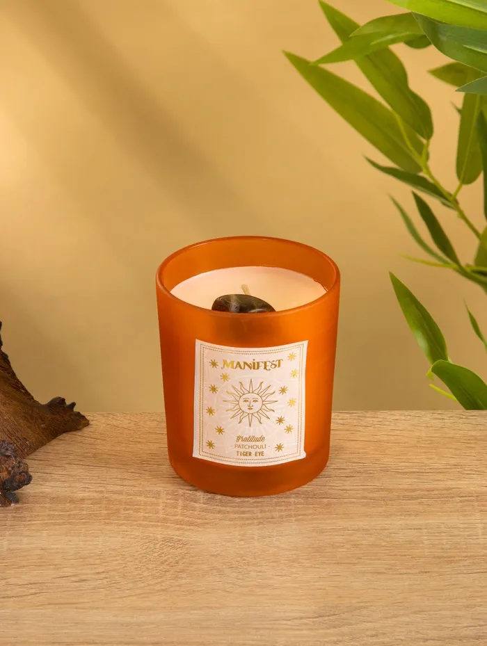 Свеча в стекле с камнем Manifest, пачули, 200 г, соевый воск
