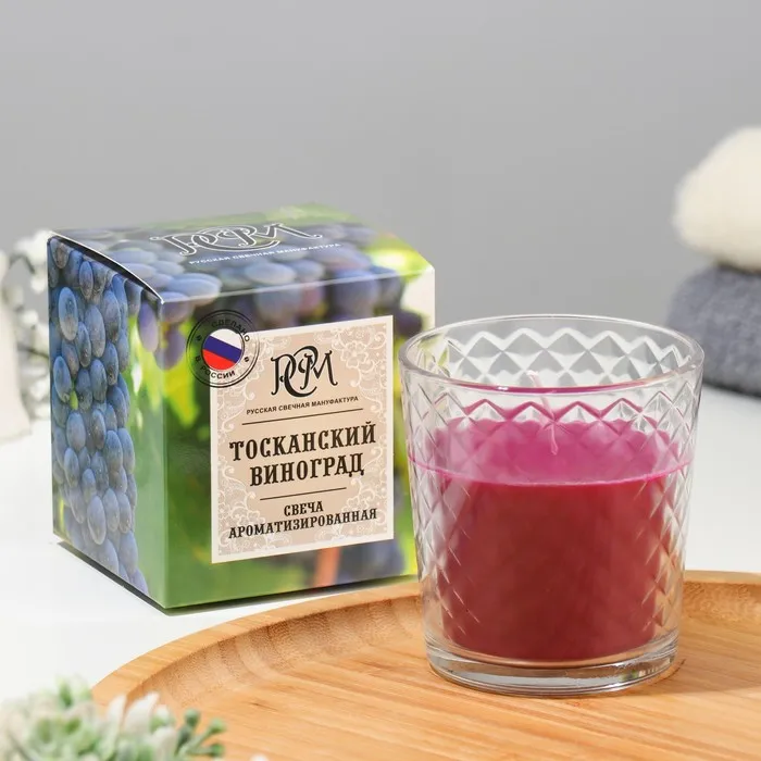 Свеча ароматическая в стакане "Тосканский виноград", подарочная упаковка, 8х8,5 см, 30 ч