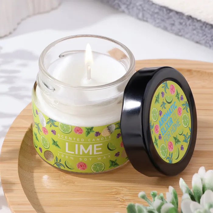 Свеча ароматическая в банке "Мятный лайм", совый воск, 80 г