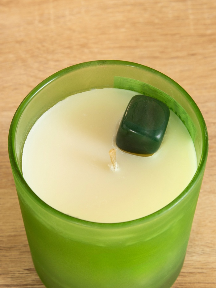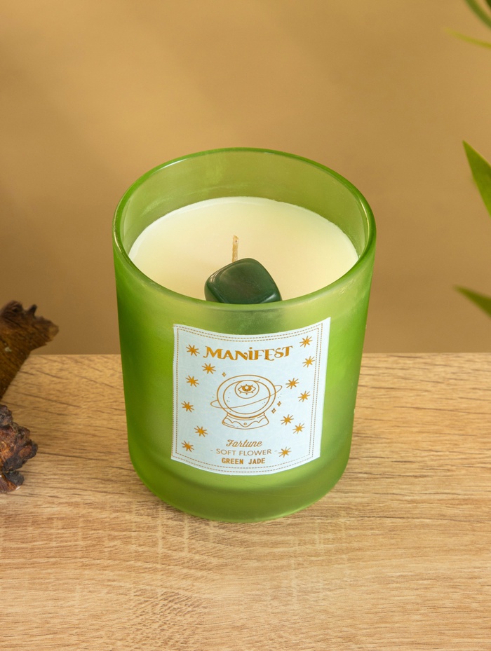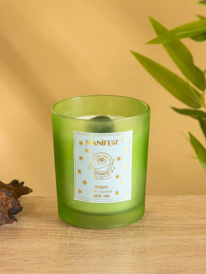 Свеча в стекле с камнем Manifest, цветочный, 200 г, соевый воск