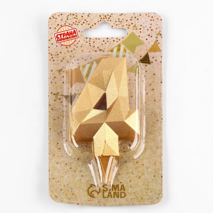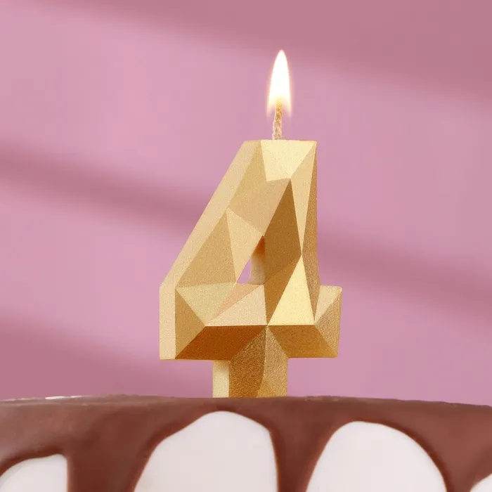 Свеча в торт «Алмаз» цифра 4 золотая, 6.5 см — Характеристики