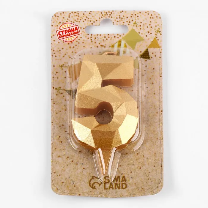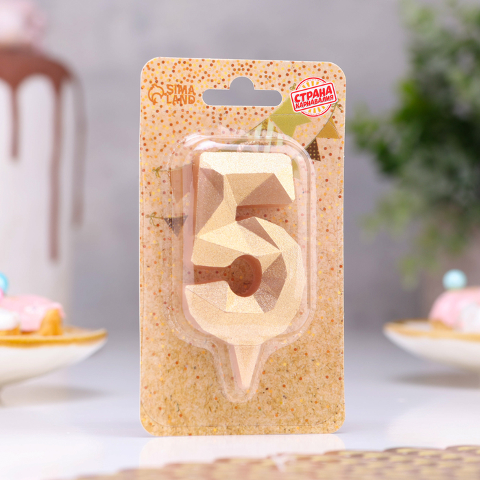 Свеча в торт «Алмаз» цифра 5 золотая, 6.5 см — Характеристики