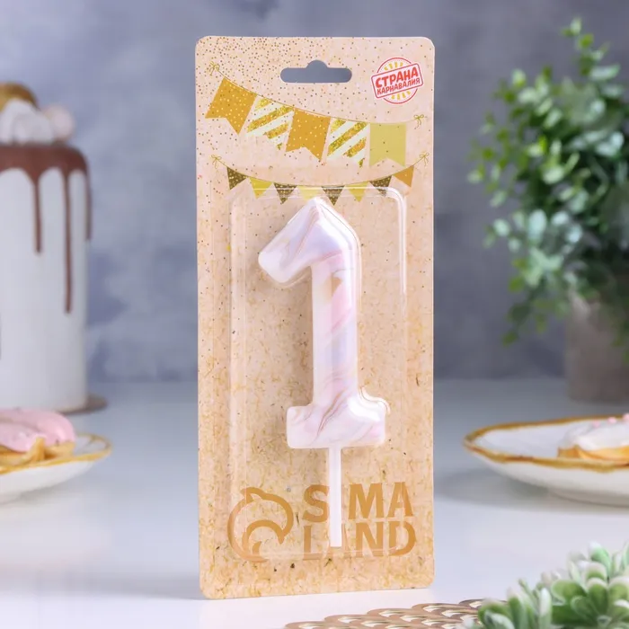 Свеча в торт «Белый мрамор», цифра 1, ГИГАНТ, 12.5 см