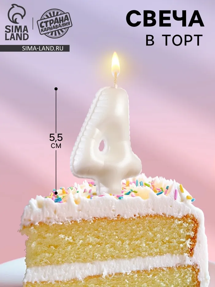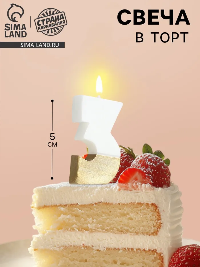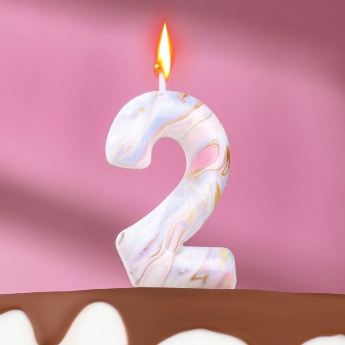 Свеча в торт «Белый мрамор», цифра 2, 5.5 см — Характеристики