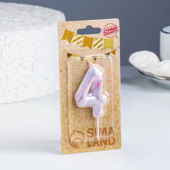 Свеча в торт «Белый мрамор», цифра 4, 5.5 см — Характеристики