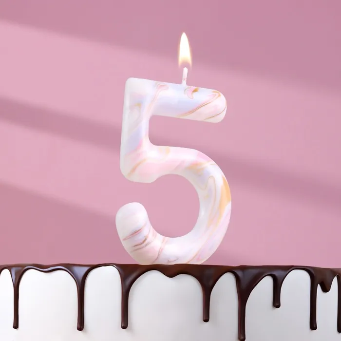 Свеча в торт «Белый мрамор», цифра 5, ГИГАНТ, 9 см — Характеристики