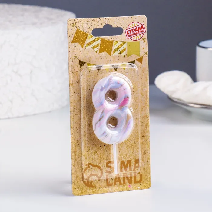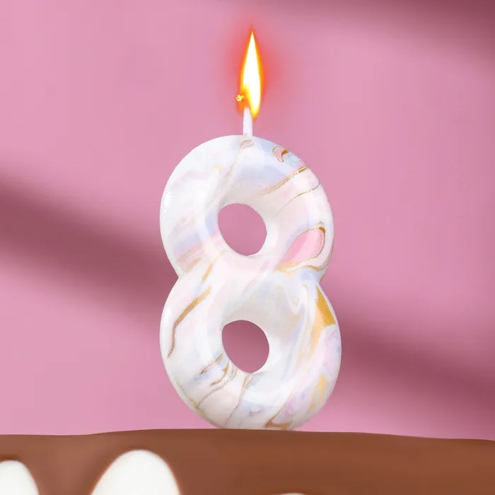 Свеча в торт «Белый мрамор», цифра 8, 5.5 см — Характеристики