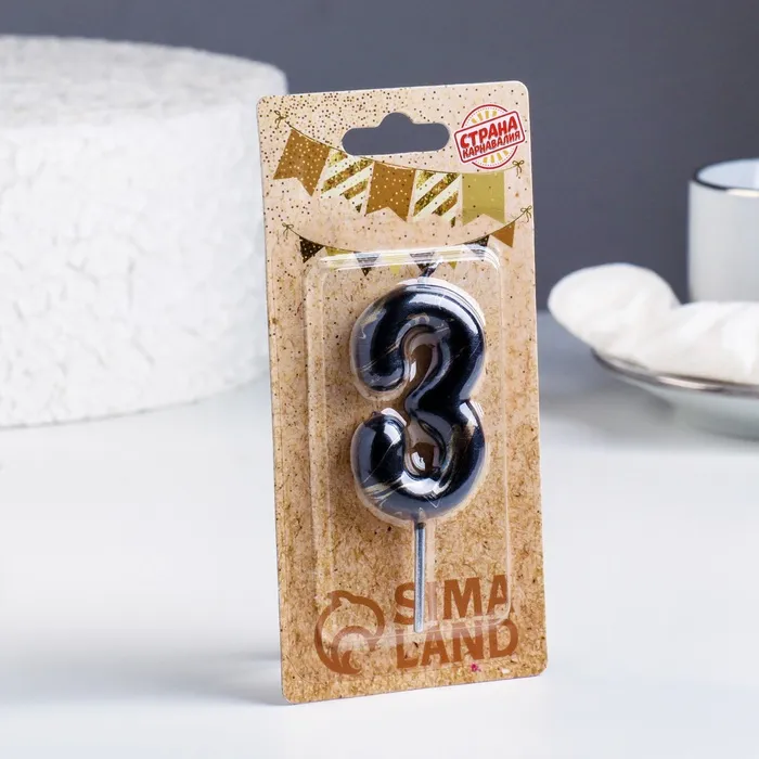 Свеча в торт «Черный мрамор», цифра 3, 5.5 см — Характеристики