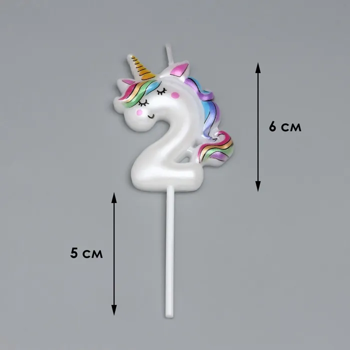 Свеча в торт «Единорог», цифра 2, 6 см — Характеристики