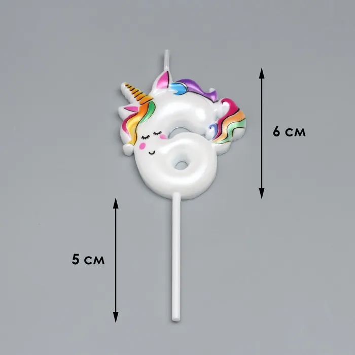 Свеча в торт «Единорог», цифра 6, 6 см — Характеристики