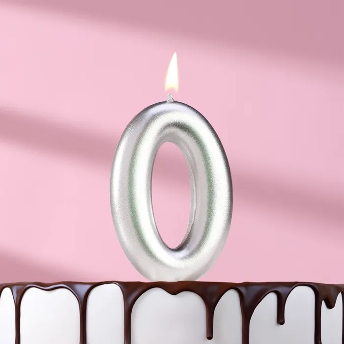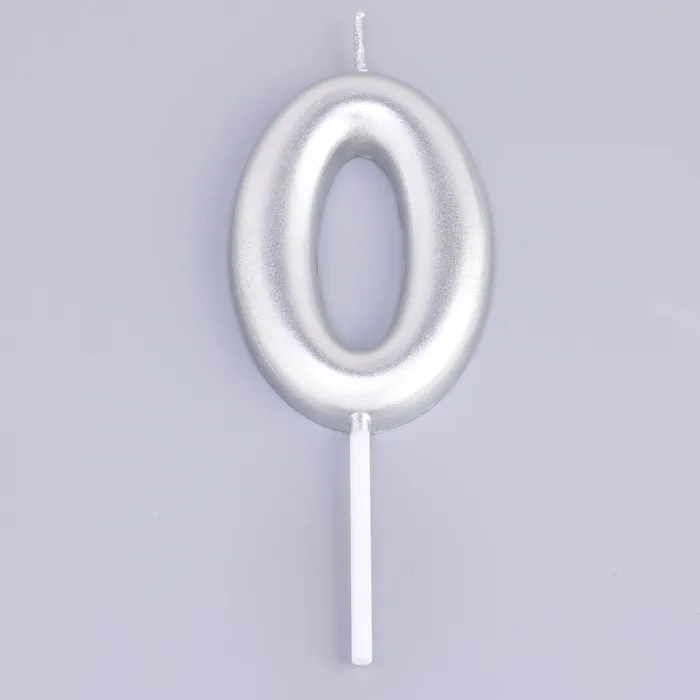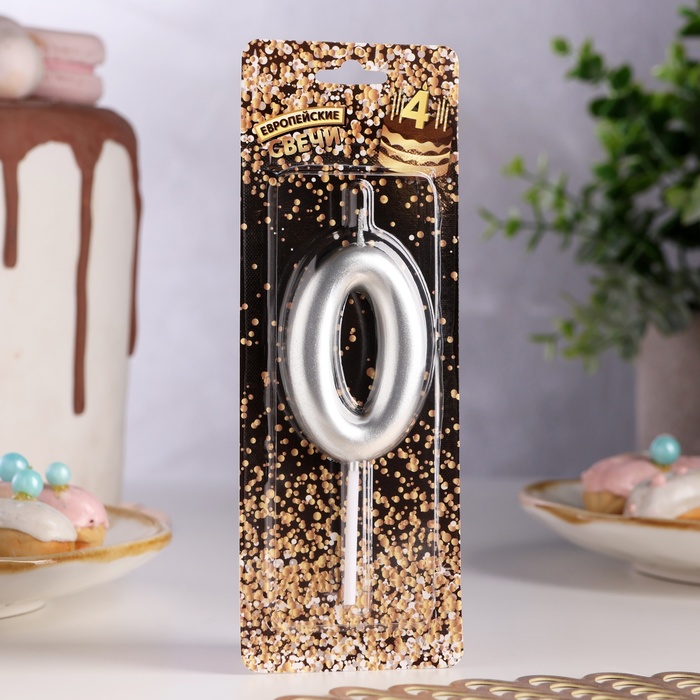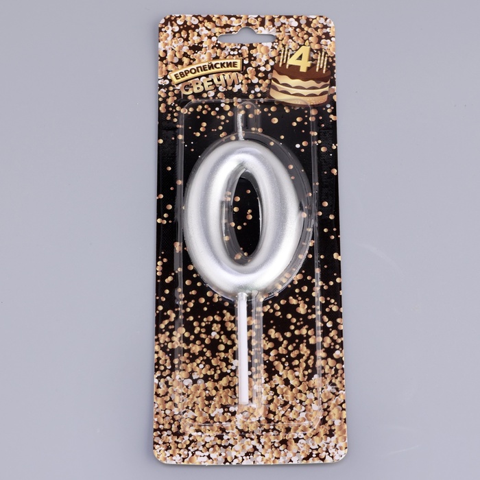Свеча в торт «Европейская», цифра 0, 6 см, серебро — Характеристики