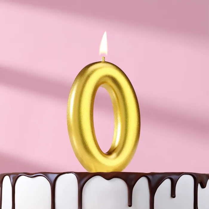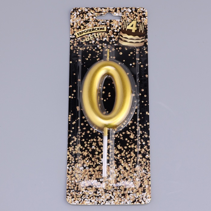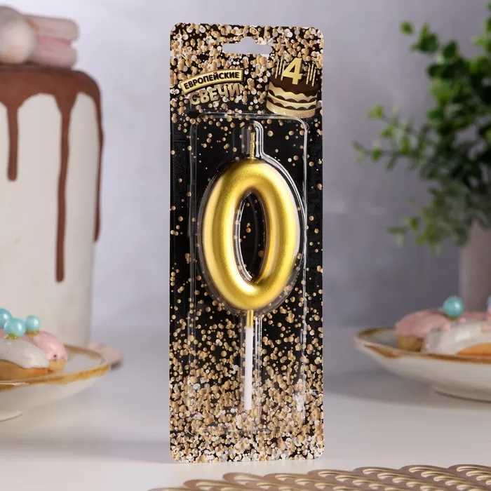 Свеча в торт «Европейская», цифра 0, 6 см, золото — Характеристики