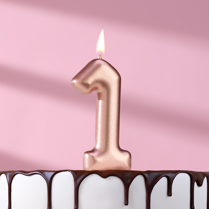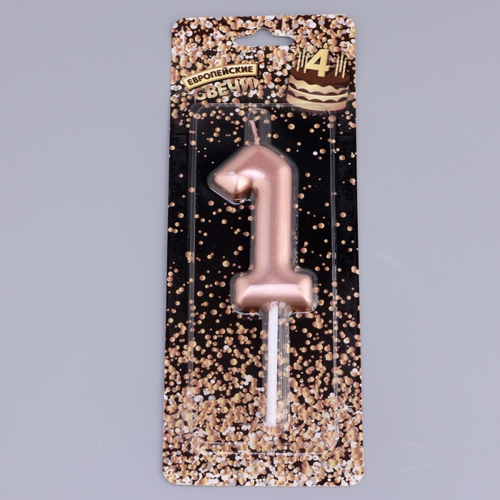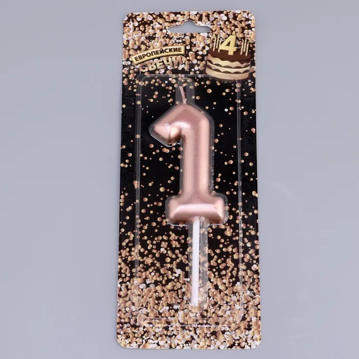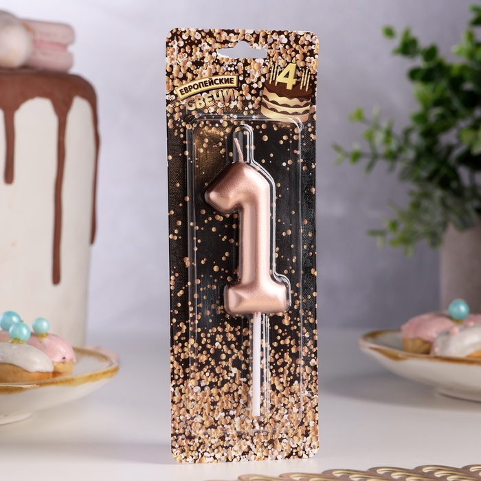 Свеча в торт «Европейская», цифра 1, 6 см, розовое золото — Характеристики