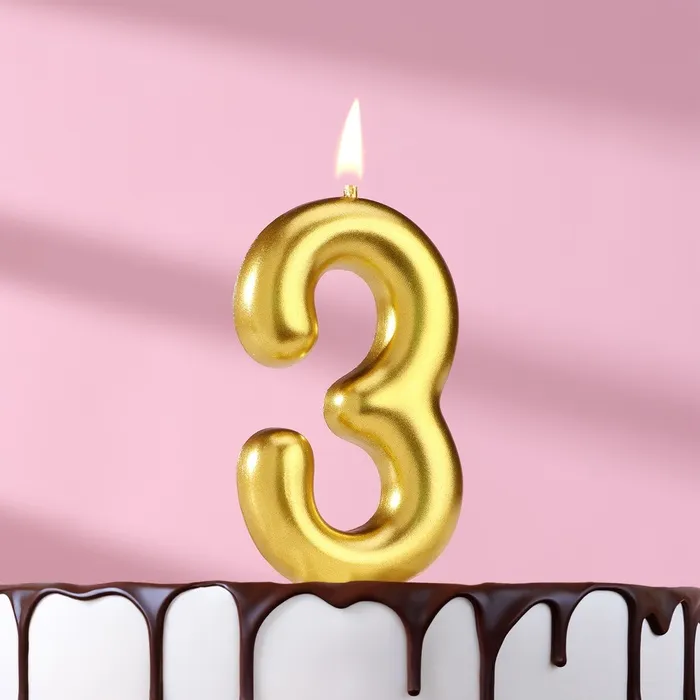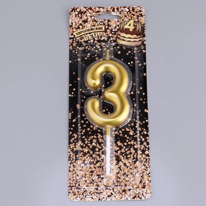 Свеча в торт «Европейская», цифра 3, 6 см, золото — Характеристики
