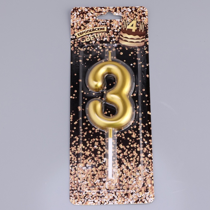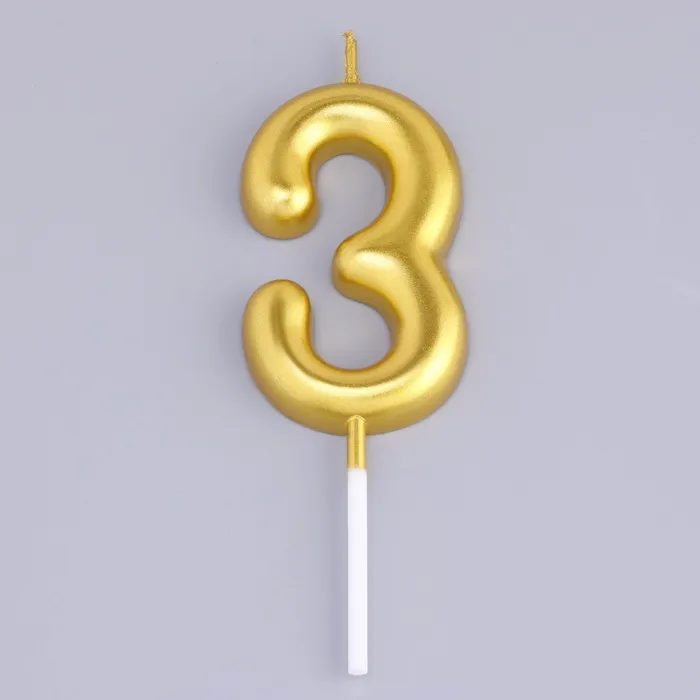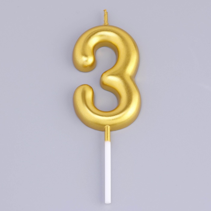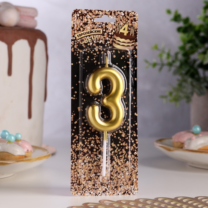 Свеча в торт «Европейская», цифра 3, 6 см, золото