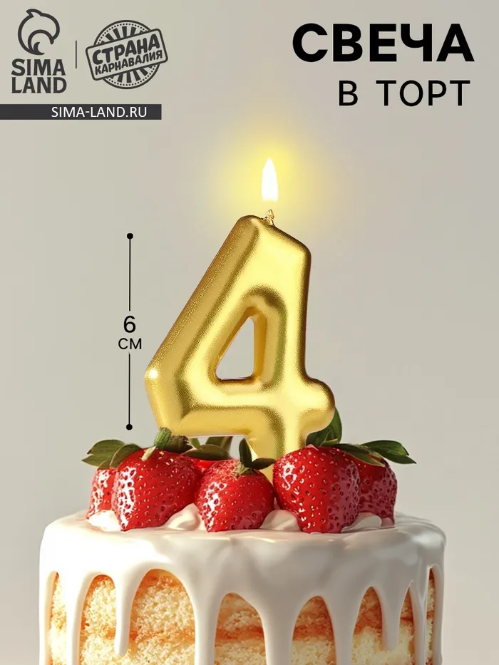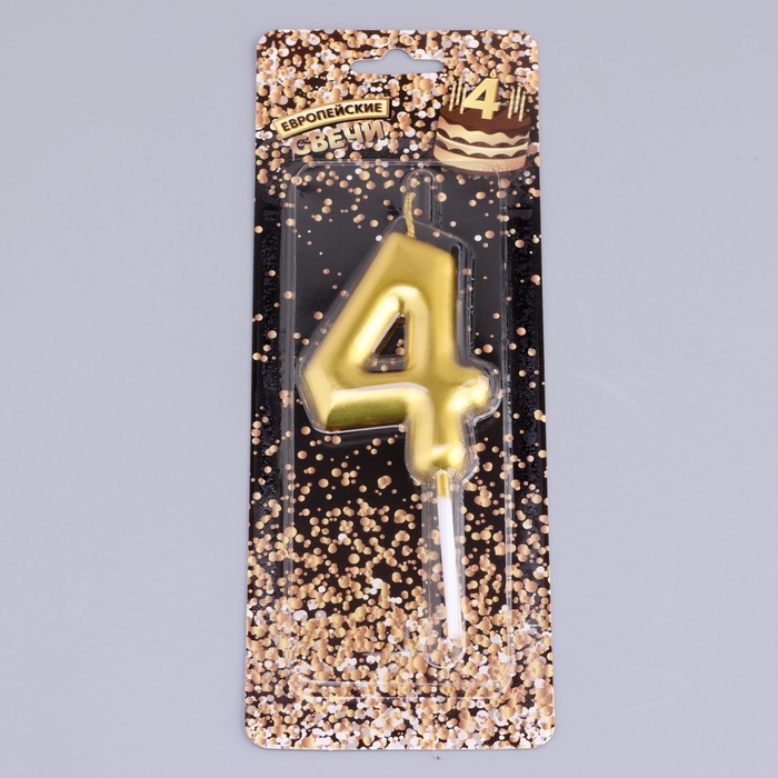 Свеча в торт «Европейская», цифра 4, 6 см, золото — Характеристики