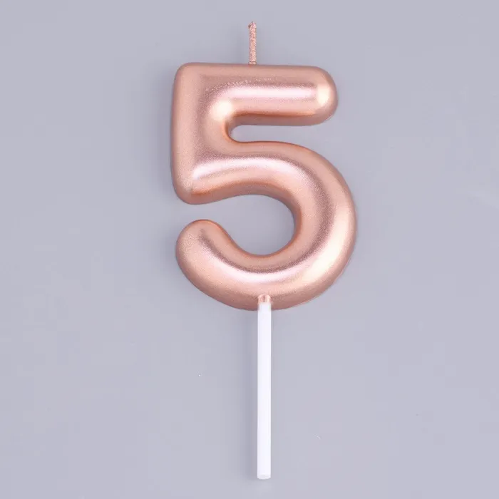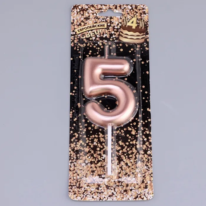 Свеча в торт «Европейская», цифра 5, 6 см, розовое золото — Характеристики