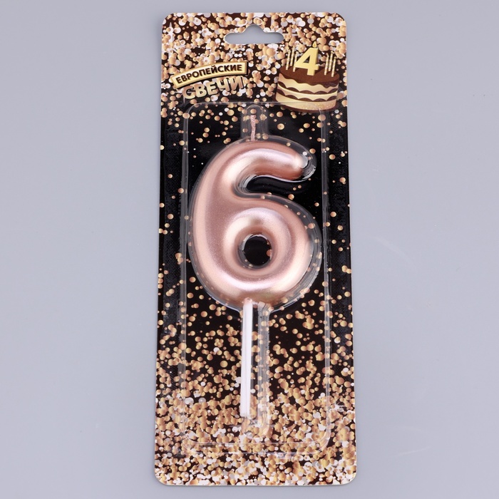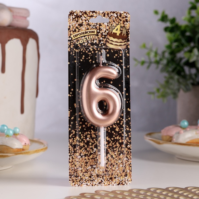Свеча в торт «Европейская», цифра 6, 6 см, розовое золото — Характеристики