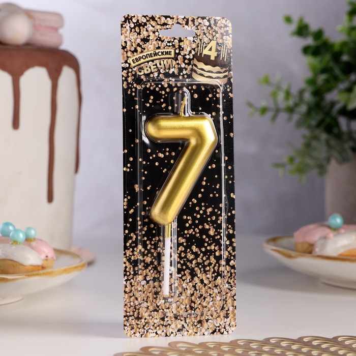 Свеча в торт «Европейская», цифра 7, 6 см, золото — Характеристики