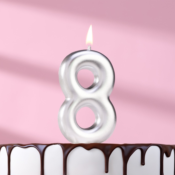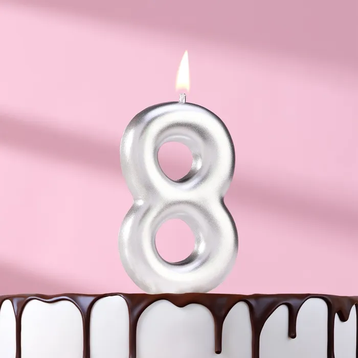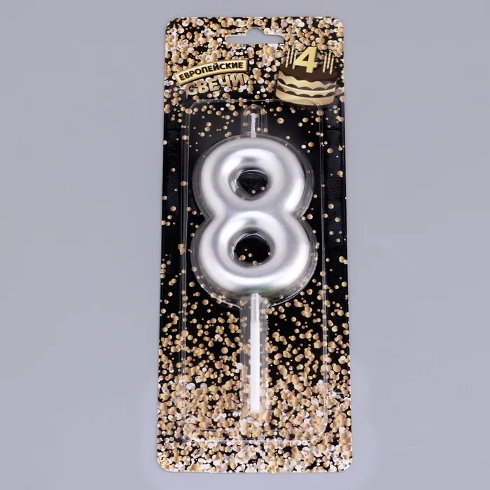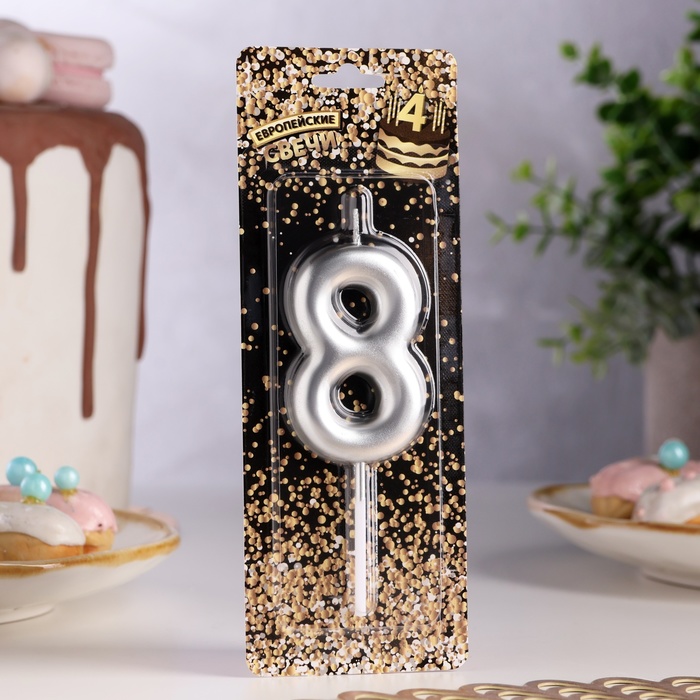 Свеча в торт «Европейская», цифра 8, 6 см, серебро — Характеристики