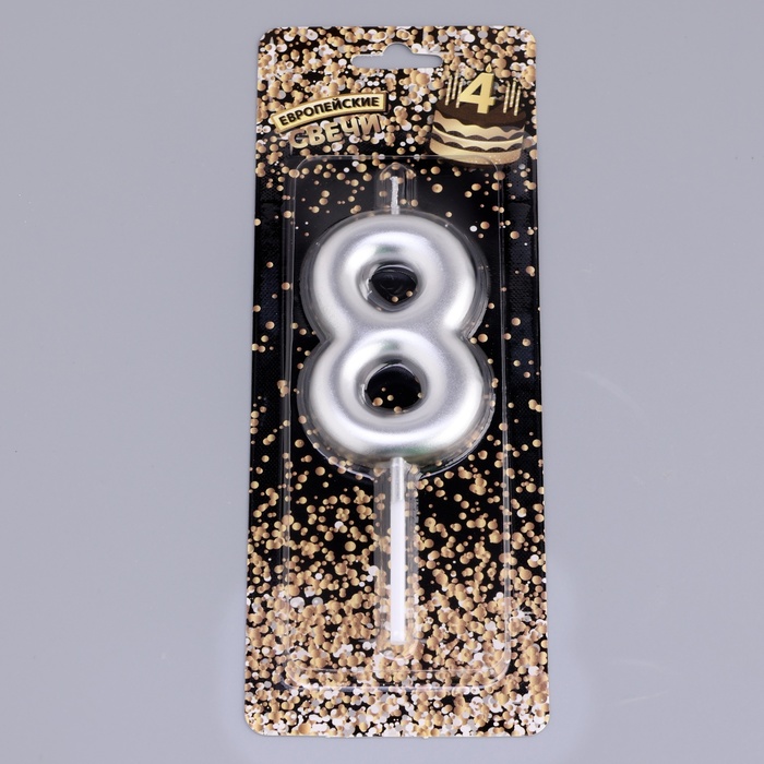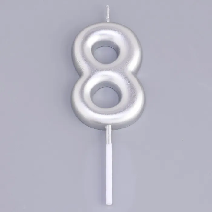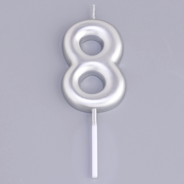 Свеча в торт «Европейская», цифра 8, 6 см, серебро