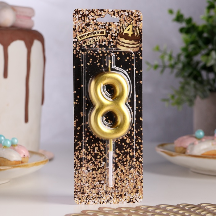 Свеча в торт «Европейская», цифра 8, 6 см, золото