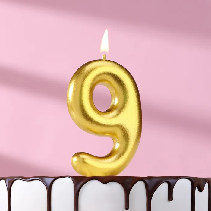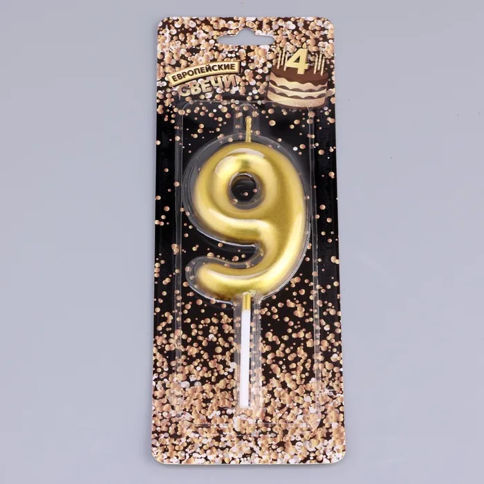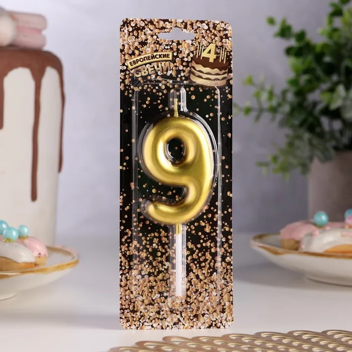 Свеча в торт «Европейская», цифра 9, 6 см, золото — Характеристики