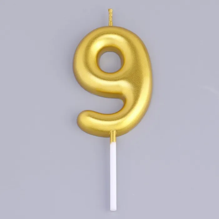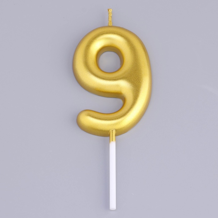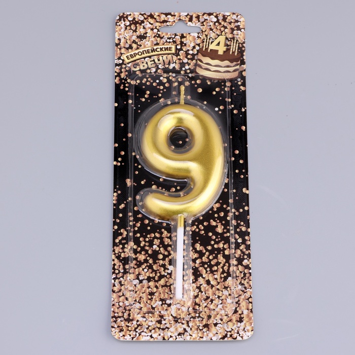 Свеча в торт «Европейская», цифра 9, 6 см, золото