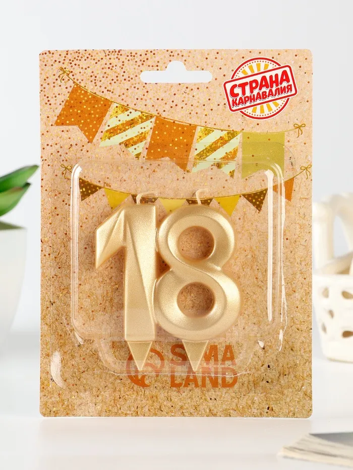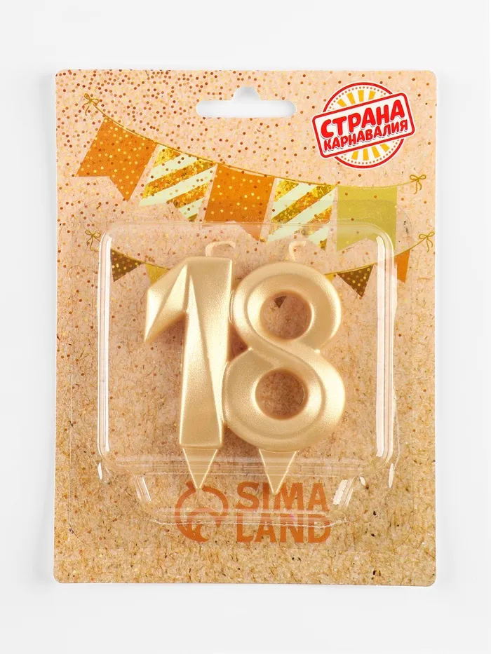 Свеча в торт «Грань», цифра 18, золотой металлик, 6.5 см — Характеристики