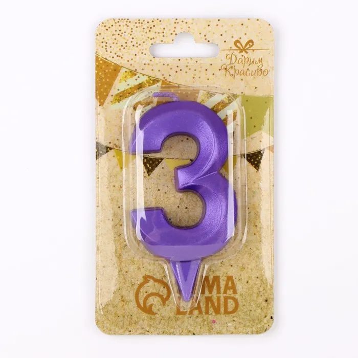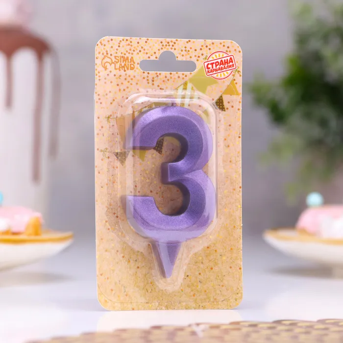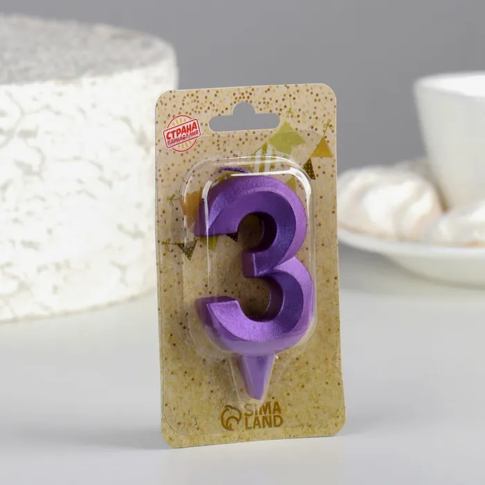 Свеча в торт «Грань», цифра 3, фиолетовый металлик, 6.5 см — Характеристики