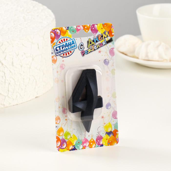 Свеча в торт «Грань», цифра 4, черный металлик, 6.5 см