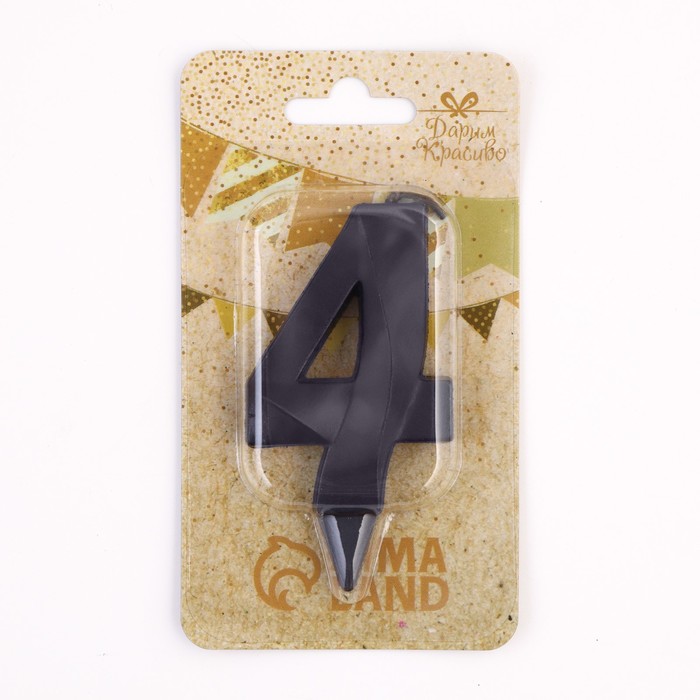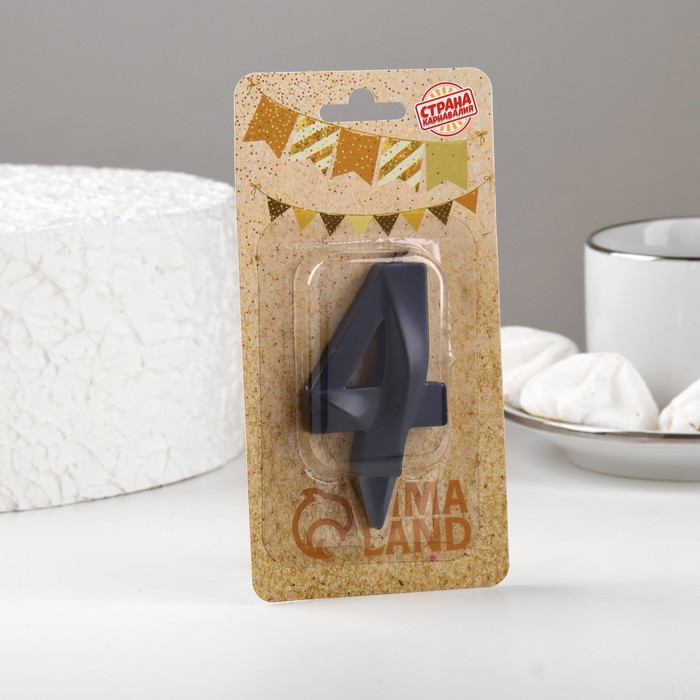 Свеча в торт «Грань», цифра 4, черный металлик, 6.5 см — Характеристики