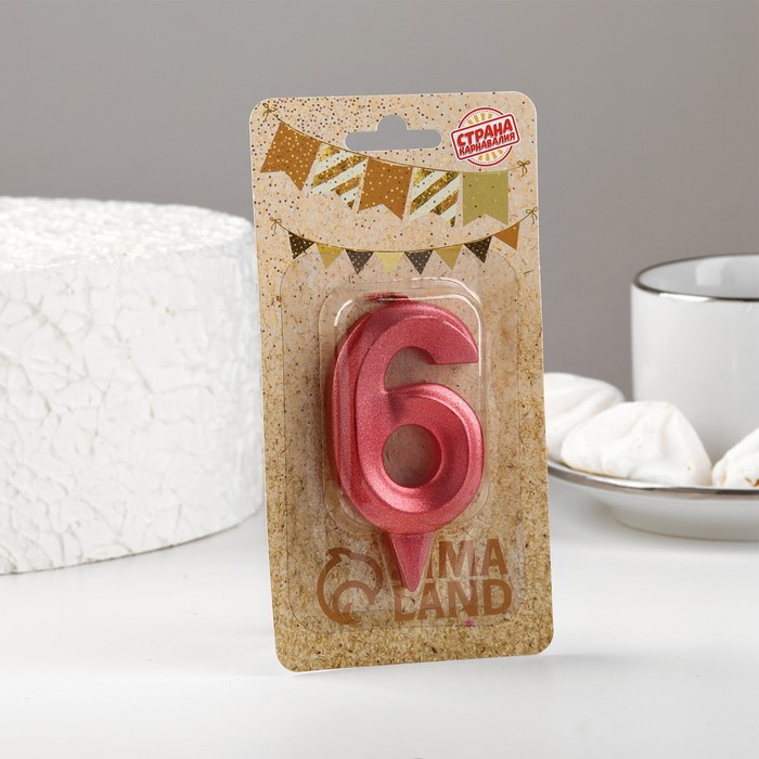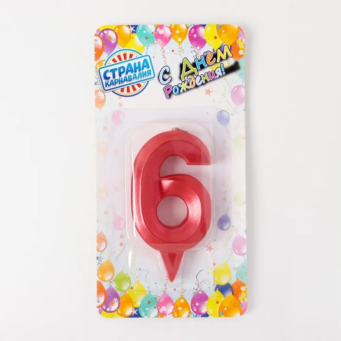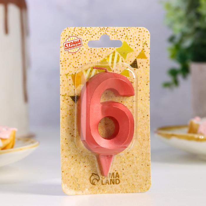 Свеча в торт «Грань», цифра 6, красный металлик, 6.5 см — Характеристики
