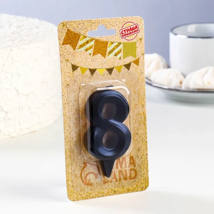 Свеча в торт «Грань», цифра 8, черный металлик, 6.5 см — Характеристики