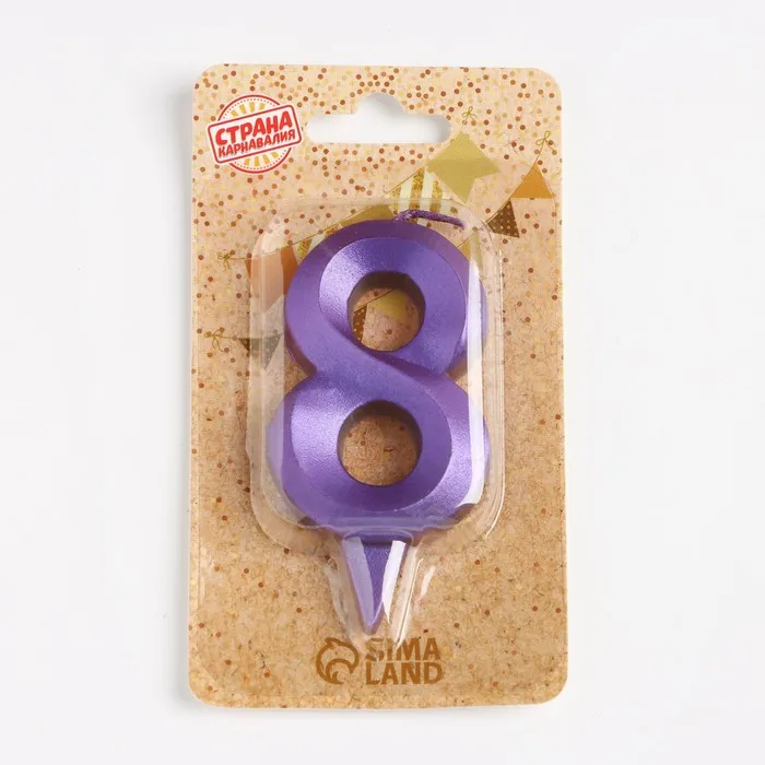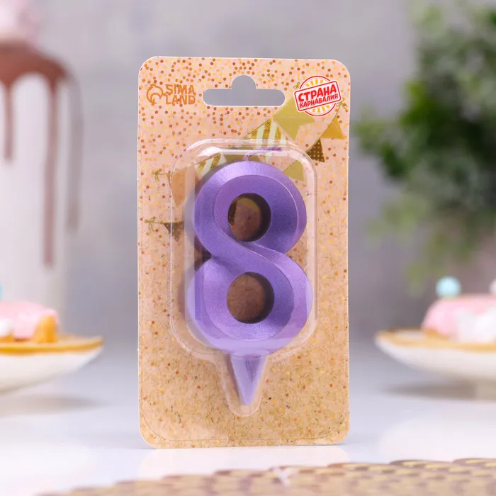 Свеча в торт «Грань», цифра 8, фиолетовый металлик, 6.5 см — Характеристики
