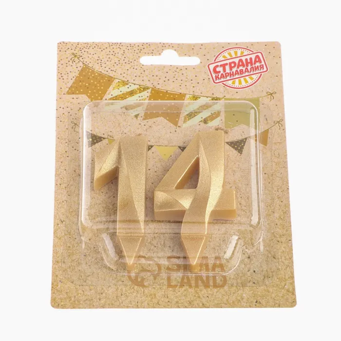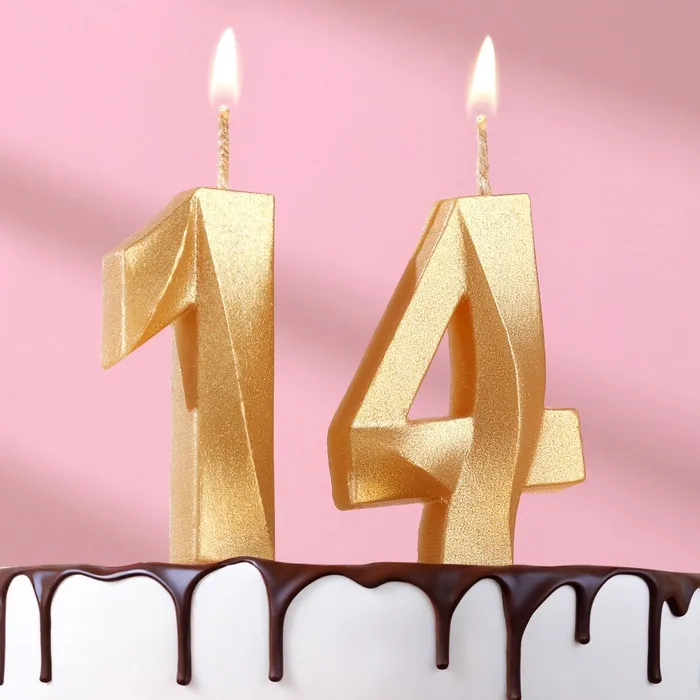 Свеча в торт юбилейная «Грань» (набор 2 в 1), цифра 14, цифра 41, золотой металлик, 6.5 см — Характеристики