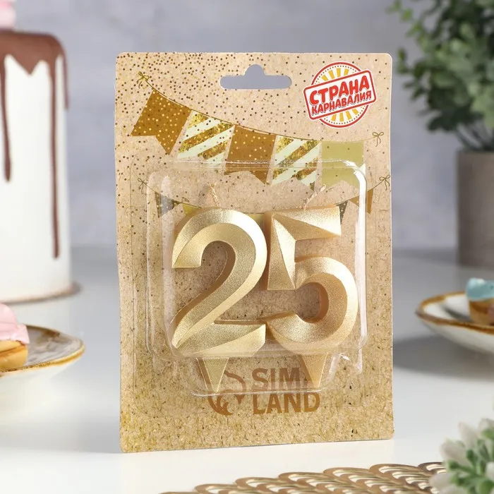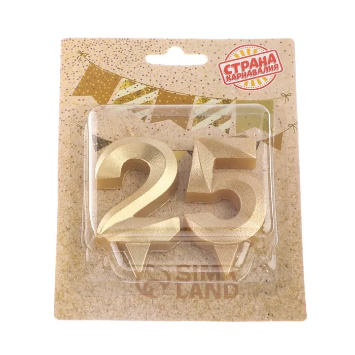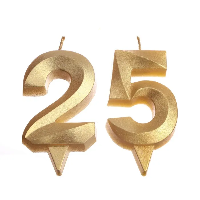Свеча в торт юбилейная «Грань» (набор 2 в 1), цифра 25, цифра 52, золотой металлик, 6.5 см — Характеристики