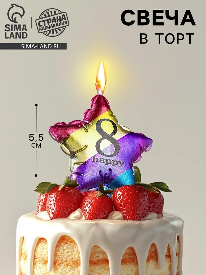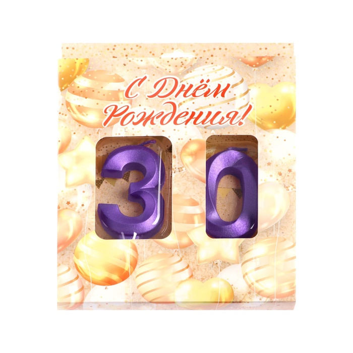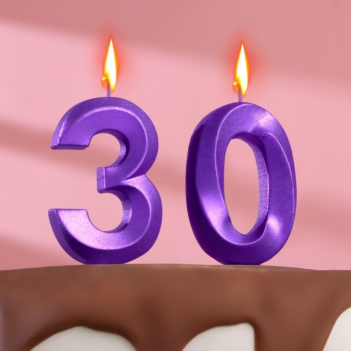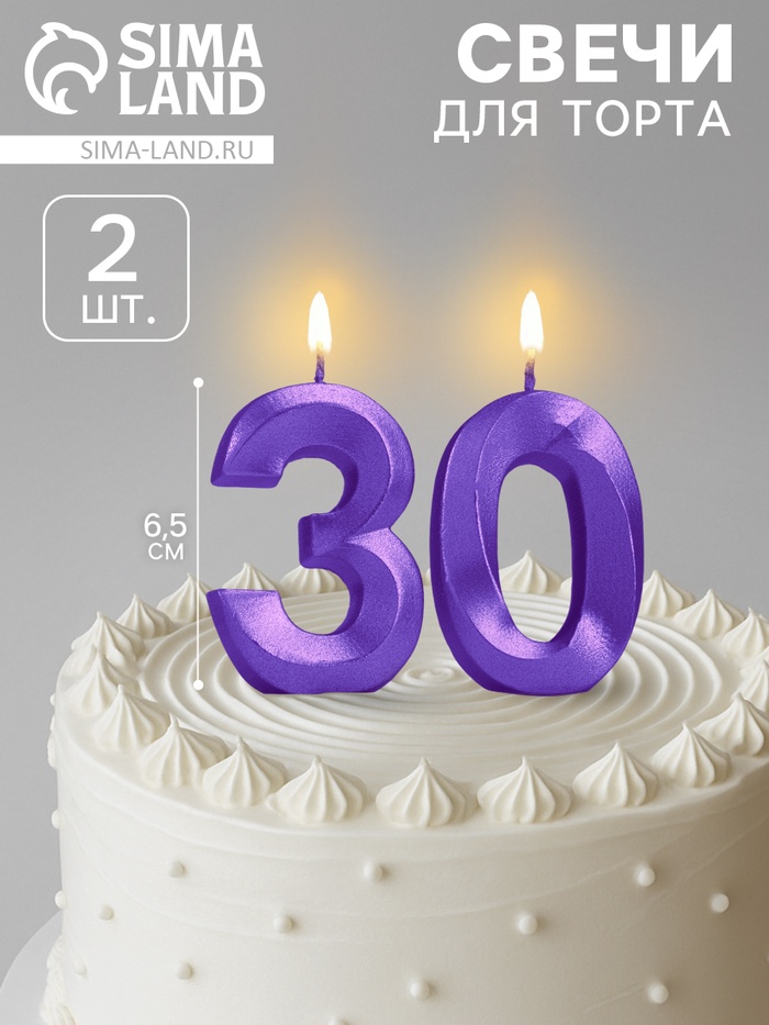 Свеча в торт юбилейная «Грань» (набор 2 в 1), цифра 30, фиолетовый металлик, 6.5 см — Характеристики