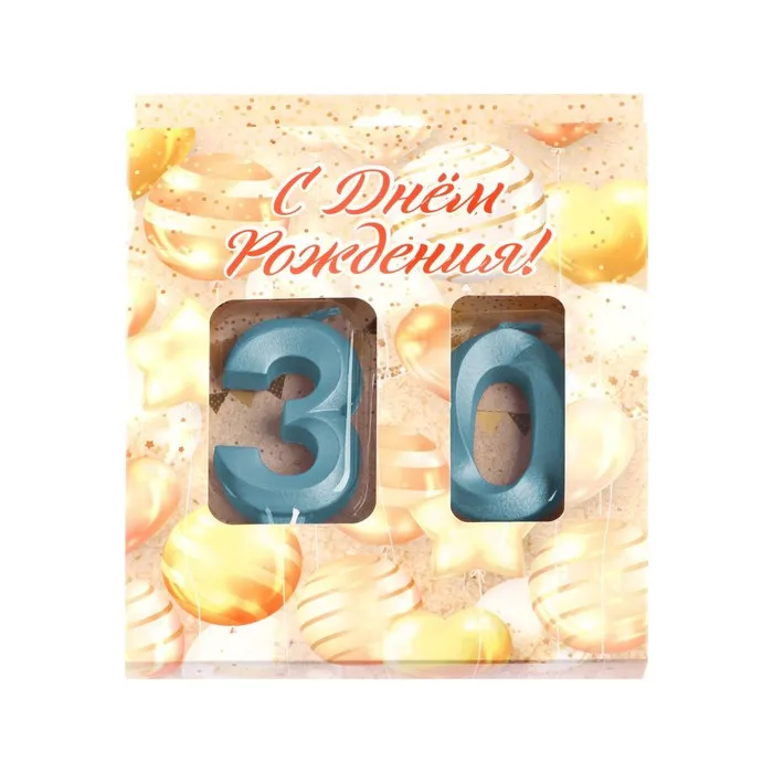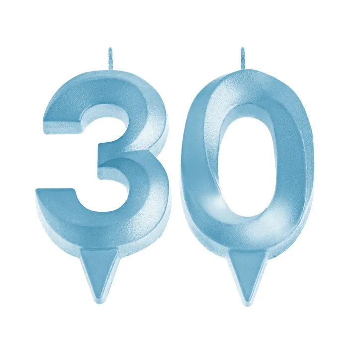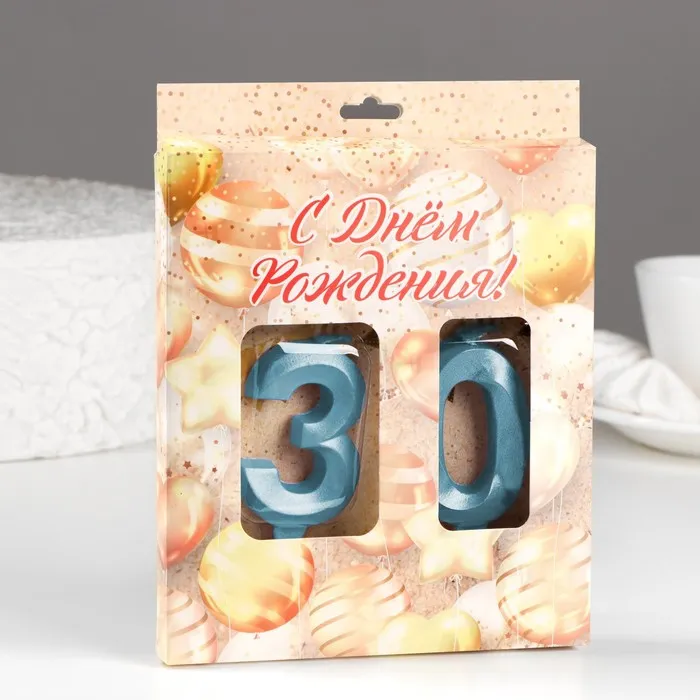Свеча в торт юбилейная «Грань» (набор 2 в 1), цифра 30, голубой металлик, 6.5 см — Характеристики