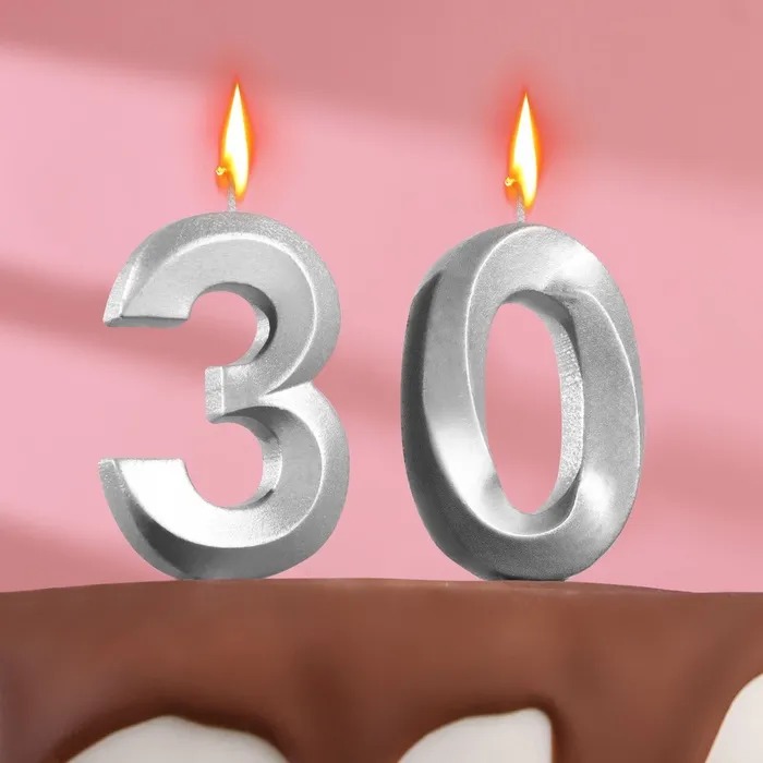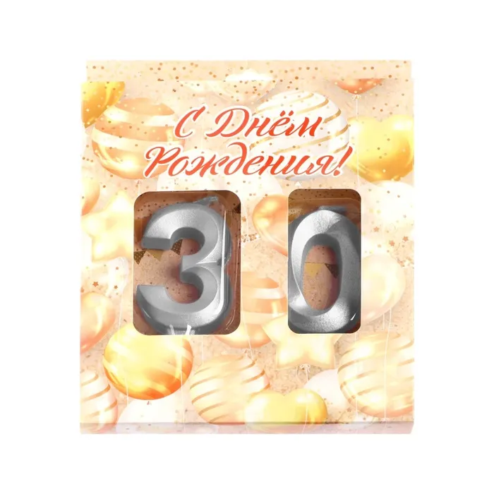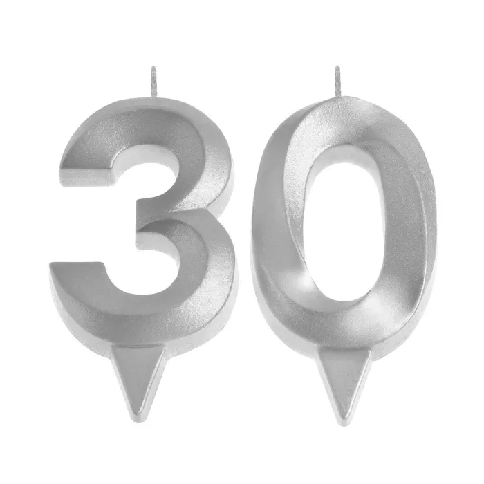 Свеча в торт юбилейная «Грань» (набор 2 в 1), цифра 30, серебряный металлик, 6.5 см — Характеристики