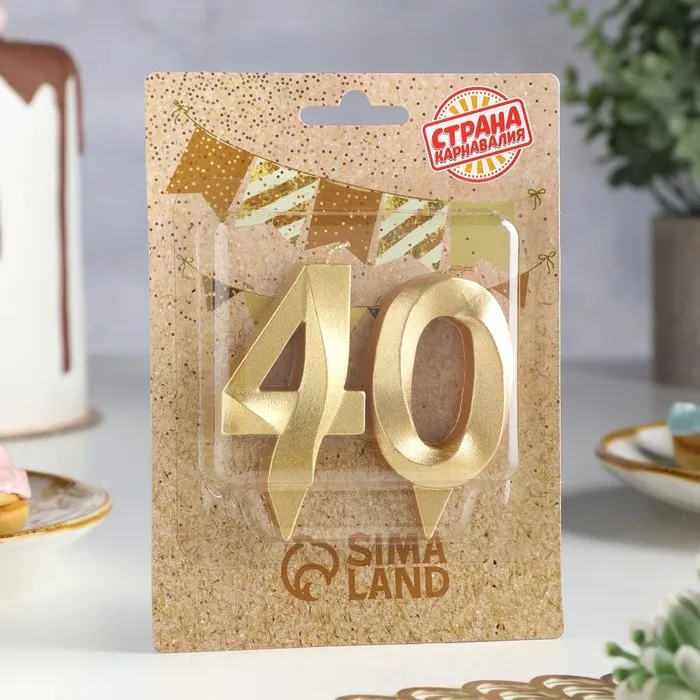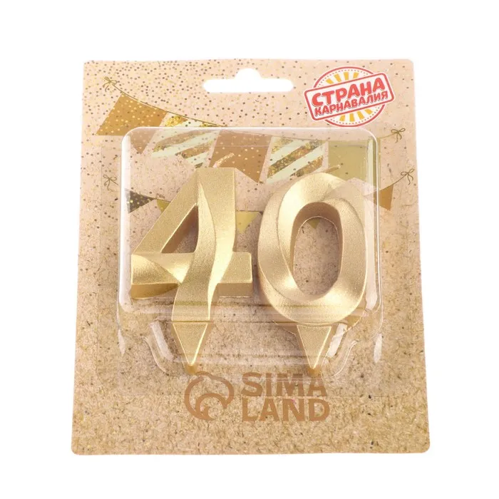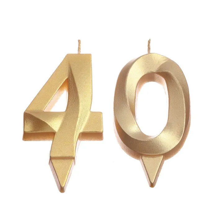 Свеча в торт юбилейная «Грань» (набор 2 в 1), цифра 40, золотой металлик, 6.5 см — Характеристики